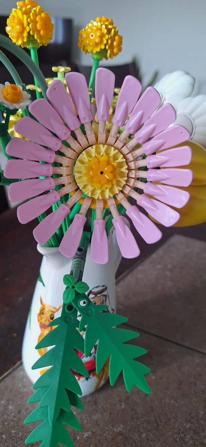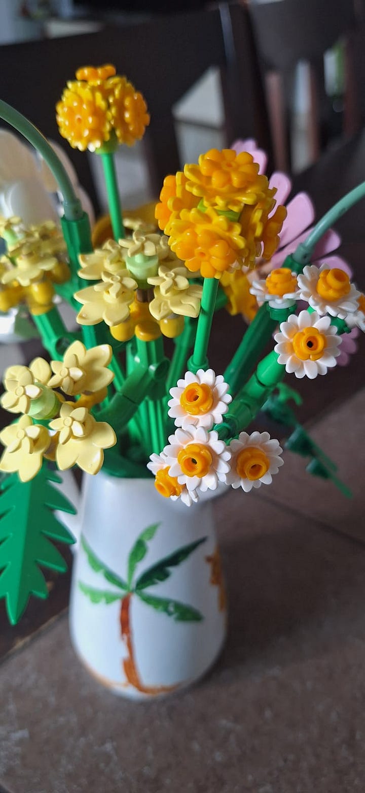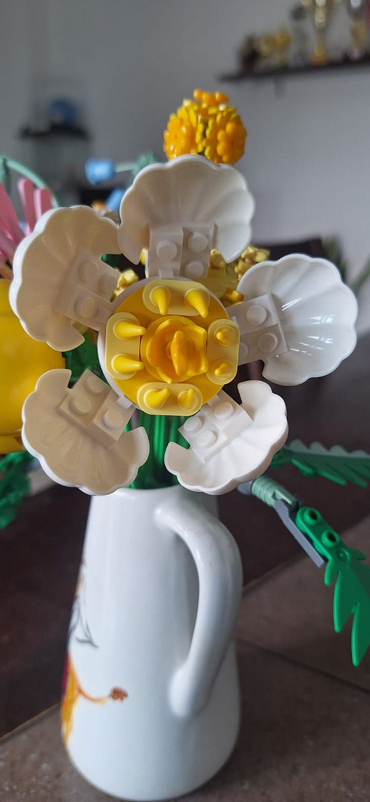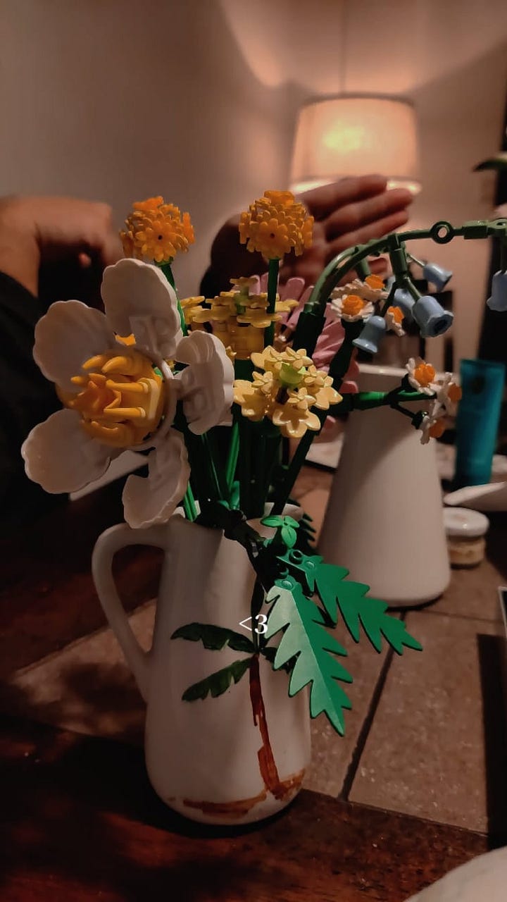 I don’t leave the dining table till I’m done finishing the Lego set. My son cheers me as my niece clicks pictures. I marvel at the plastic flowers and the irony of it - in a region dismissed as “fake” and all bling, will this be all we have left as the real world burns?