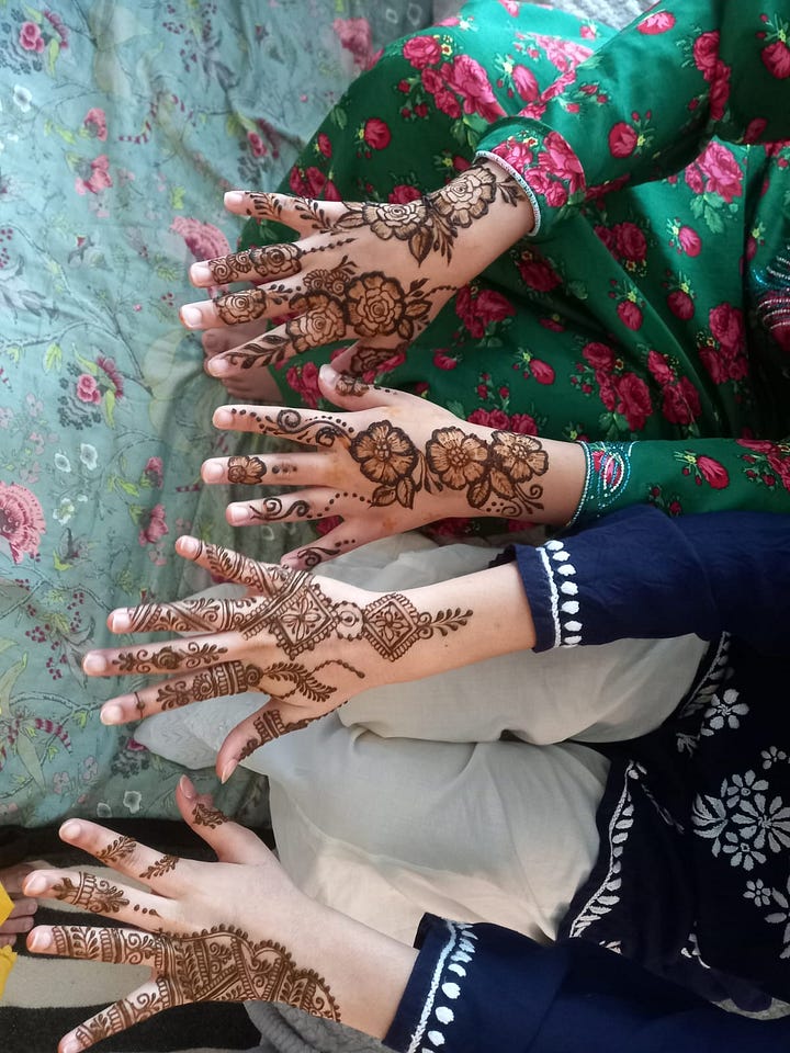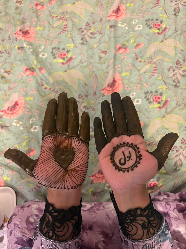 I hosted henna at my place. Friends who needed to get their mind off the missiles, friends who didn’t fly home for Eid showed up. Little do they know their presence helped me more than they could imagine. For a few hours, my home was filled with toddlers, little girls and women of different nationalities rejoicing over their shared love for henna.