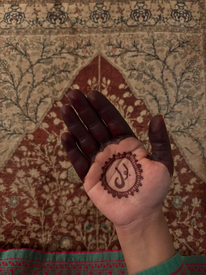 My henna says in Urdu, Bol. Speak Up. IYKYK. Don’t miss my henna stain. Resistance comes in deep, dark hues.
