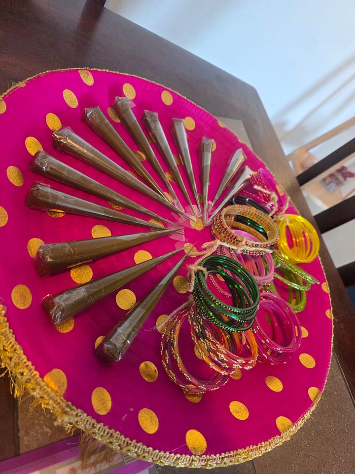 I offered the community my glass bangles in case someone was yearning for them. Two 16-year-olds arrived and were quite pleased with my collection. In their adorable British accents, the girls said excitedly, “Aunty! This feels like I’m shopping for Eid in Pakistan.” I told them most of my glass bangles are from Patna, with a few plain ones from Mumbai and some gifted by my Pakistani friends.